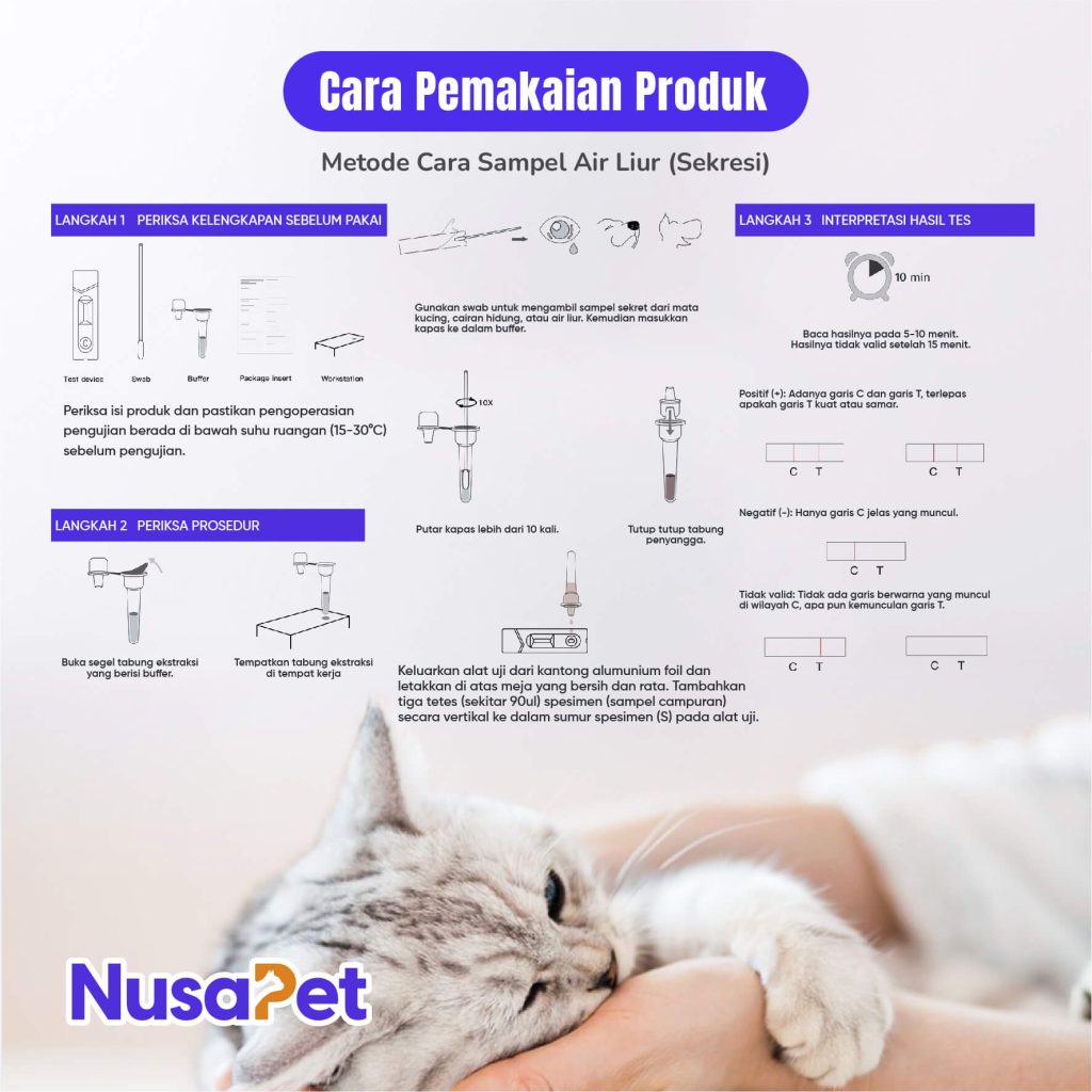 Rapid test kit FHV kucing dapat digunakan untuk mendeteksi keberadaan Feline Herpes (FHV) dengan cepat dan mudah agar kondisi sakit kucing dapat segera diketahui.